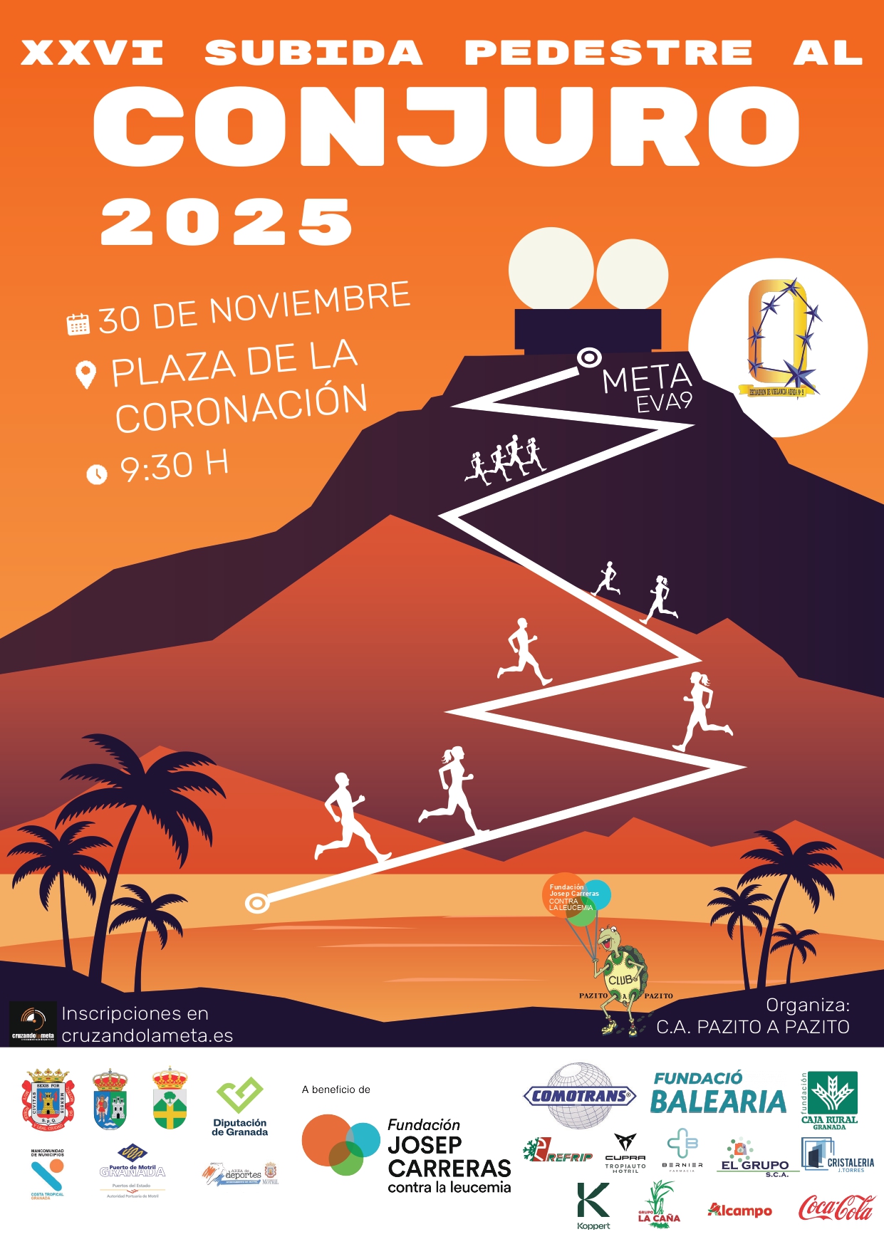 El Área de Deportes del Ayuntamiento de Motril ha presentado esta mañana la XXVI Subida Pedestre al Conjuro, una de las pruebas más emblemáticas del calendario deportivo local, organizada por el Club de Atletismo Pazito a Pazito en colaboración con el Ayuntamiento y el Escuadrón de Vigilancia Aérea número 9 del Ejército del Aire y del Espacio. En la rueda de prensa, celebrada por el teniente de alcalde de Deportes, Daniel Ortega Moreno, junto a la presidenta del club, Conchi Escobar, y la vicepresidenta, Marilú Méndez, se han dado a conocer los detalles de una edición que volverá a celebrarse el próximo 30 de noviembre con un fuerte componente deportivo, comunitario y solidario.