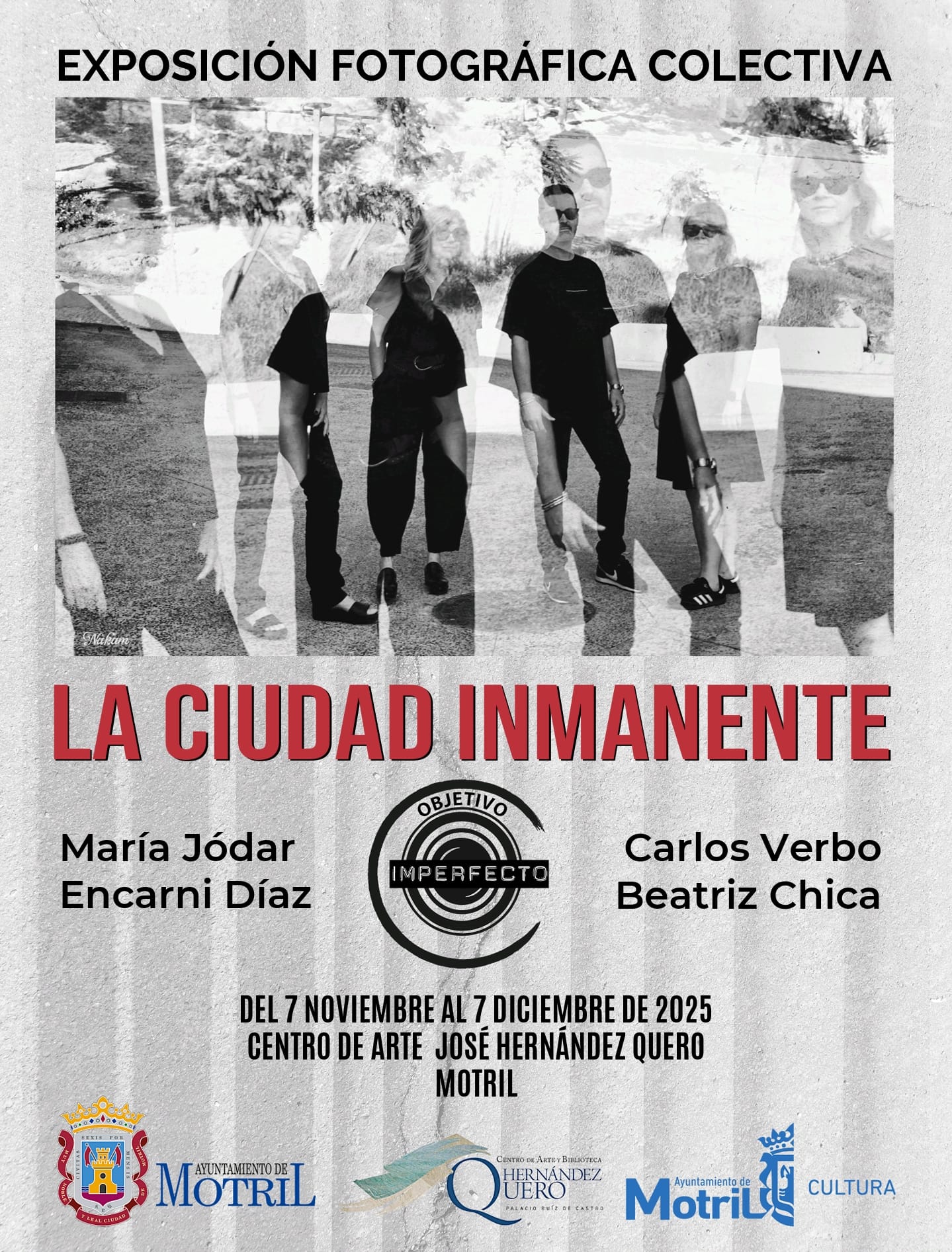 El concejal de Cultura del Ayuntamiento de Motril, Miguel Ángel Muñoz Pino, junto a los miembros de Objetivo Imperfecto, Beatriz Chica, María Jódar, Encarni Díaz y Carlos Verbo, han presentado esta mañana la exposición fotográfica “La ciudad inmanente”, que podrá visitarse del 7 de noviembre al 7 de diciembre en el Centro de Arte José Hernández Quero, con entrada libre. Por su parte, la inauguración tendrá lugar el día 7 de noviembre a las 21:00 horas.