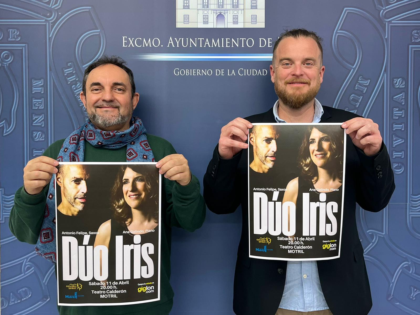 El concejal de Cultura del Ayuntamiento de Motril, Miguel Ángel Muñoz Pino, junto con al director de Odysée Spain, Alejandro Galindo, han presentado esta mañana el quinto de los conciertos incluidos en la tercera edición del festival “6 estilos, 1 objetivo”, que tendrá como protagonista al Dúo Iris.