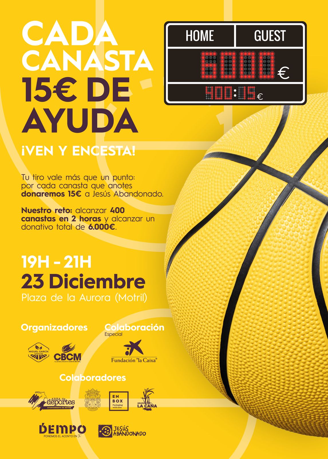 Durante dos horas, entre las 19:00 y 21:00 horas, cada persona que enceste un balón transformará su canasta en un donativo de 15 euros, que irá íntegramente destinado a la Asociación Jesús Abandonado. Por supuesto, puede participar cualquier persona e intentarlo las veces que sean necesarias. Para esta edición se ha propuesto un reto muy especial: alcanzar las 400 canastas, lo que supondría reunir 6.000€ para ayudar a las personas que más lo necesitan en estas fechas.