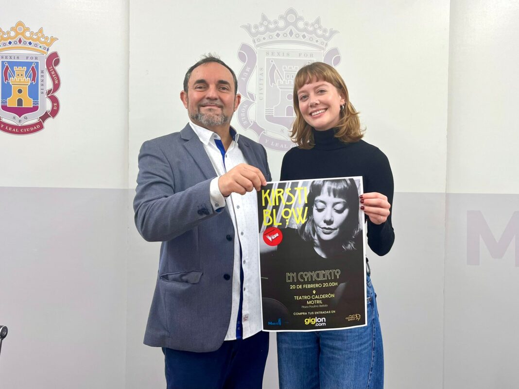 El concejal de Cultura del Ayuntamiento de Motril, Miguel Ángel Muñoz Pino, ha presentado en rueda de prensa, junto a la propia artista, el concierto de la cantautora neoyorquina Kirsti Blow, conocida por su paso en el programa ‘La Voz 2025’.