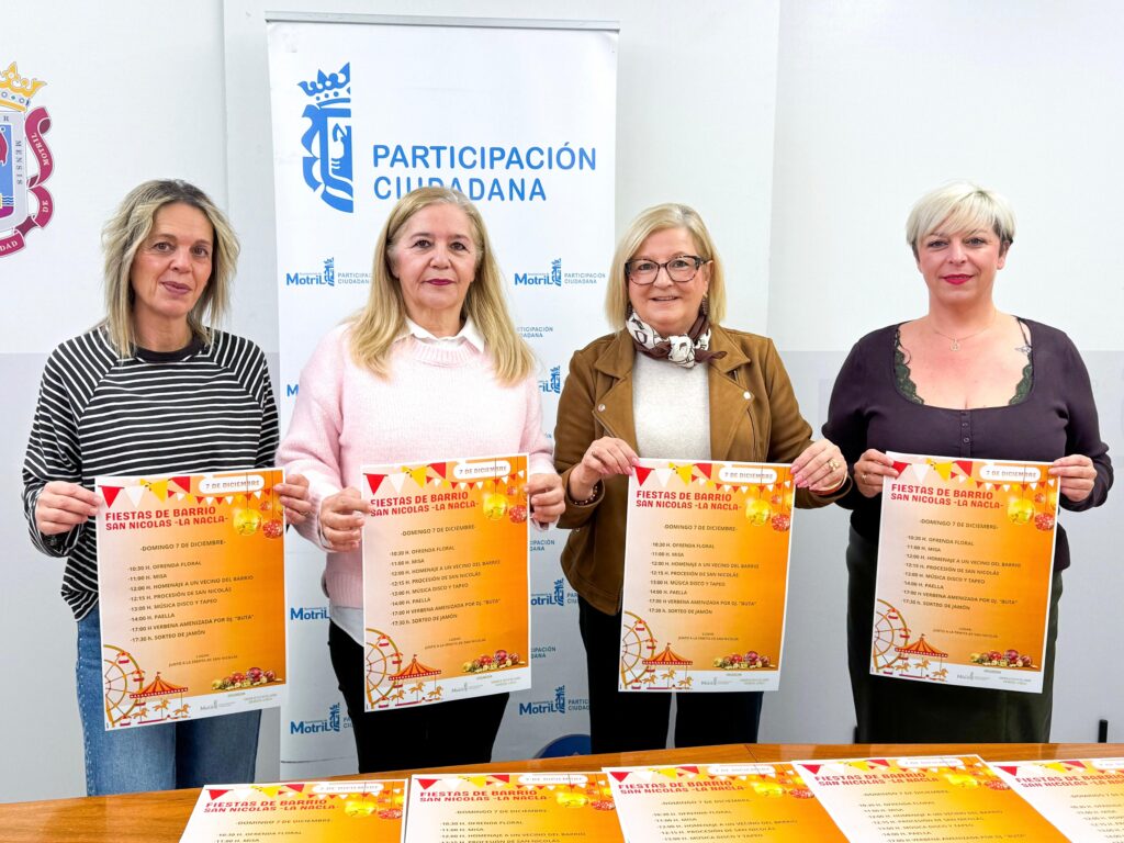 La teniente de alcalde encargada del área municipal de Participación Ciudadana, Inmaculada Torres, junto con una de las representantes de la Comisión de Fiestas del barrio, Celia Manzano, han presentado la programación para las fiestas en honor a San Nicolás de La Nacla, que se celebrarán durante el próximo domingo 7 de diciembre.