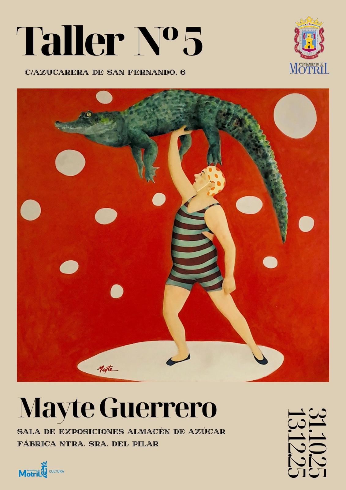 Esta exposición se inaugurará el próximo viernes 31 de octubre a partir de las 19:00 horas, con una actuación en directo de Alejandro Galindo al saxo, y estará disponible para su visita en la Fábrica de Nuestra Señora del Pilar hasta el próximo 13 de diciembre de 2025. Esta muestra artística recoge una serie de pinturas en las que se muestran las vivencias de la artista. Además, Para Mayte Guerrero, esta exhibición artística es “un acercamiento al transcurso de su visión de la vida y repasan el imaginario propio de la autora”, con una serie de pinturas “en tono humorístico y que se acercan más a la ilustración que a la propia pintura”. “Esta exposición recibe el nombre de Taller Nº5 porque se trata de mi quinta exposición, lo que supone todo un orgullo traerla aquí a Motril y en un sitio tan maravilloso y muestra del paso de la historia de la ciudad como la Fábrica del Pilar”, ha comentado la autora.