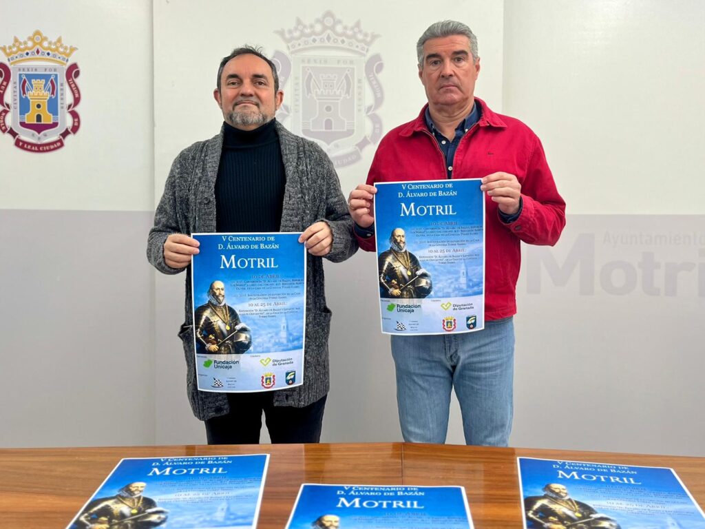 El concejal de Cultura del Ayuntamiento de Motril, Miguel Ángel Muñoz Pino, ha presentado en rueda de prensa la exposición itinerante ‘Álvaro de Bazán y Lepanto: más allá de Cervantes’, acompañado por José Miguel Pérez Juárez, colaborador de la Asociación 500 Aniversario Álvaro de Bazán.