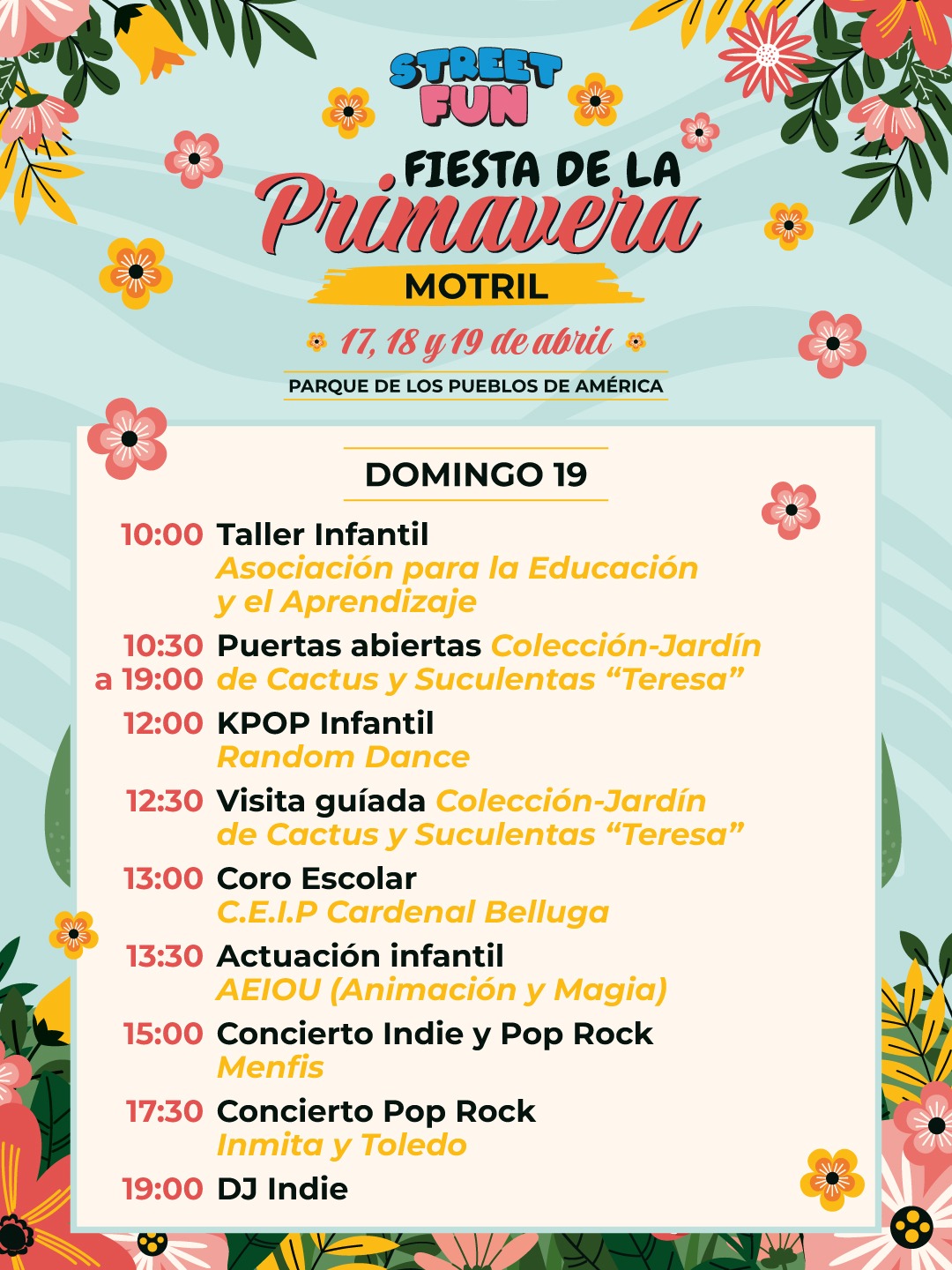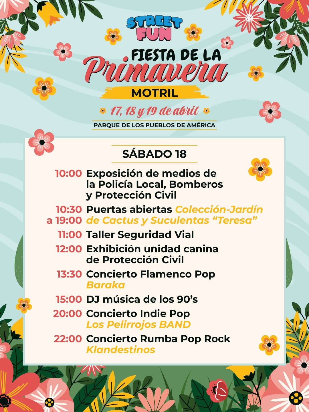 Un año más, Motril volverá a celebrar la Fiesta de la Primavera, un evento de éxito multitudinario que reúne a cientos de motrileños y visitantes con una programación diversa de actividades pensadas para el disfrute de personas de todas las edades. Este evento se celebrará entre el 17 y el 19 de abril en el Parque de los Pueblos de América y acogerá de nuevo una jornada de puertas abiertas en el Jardín de Cactus y Suculentas ‘Teresa’.