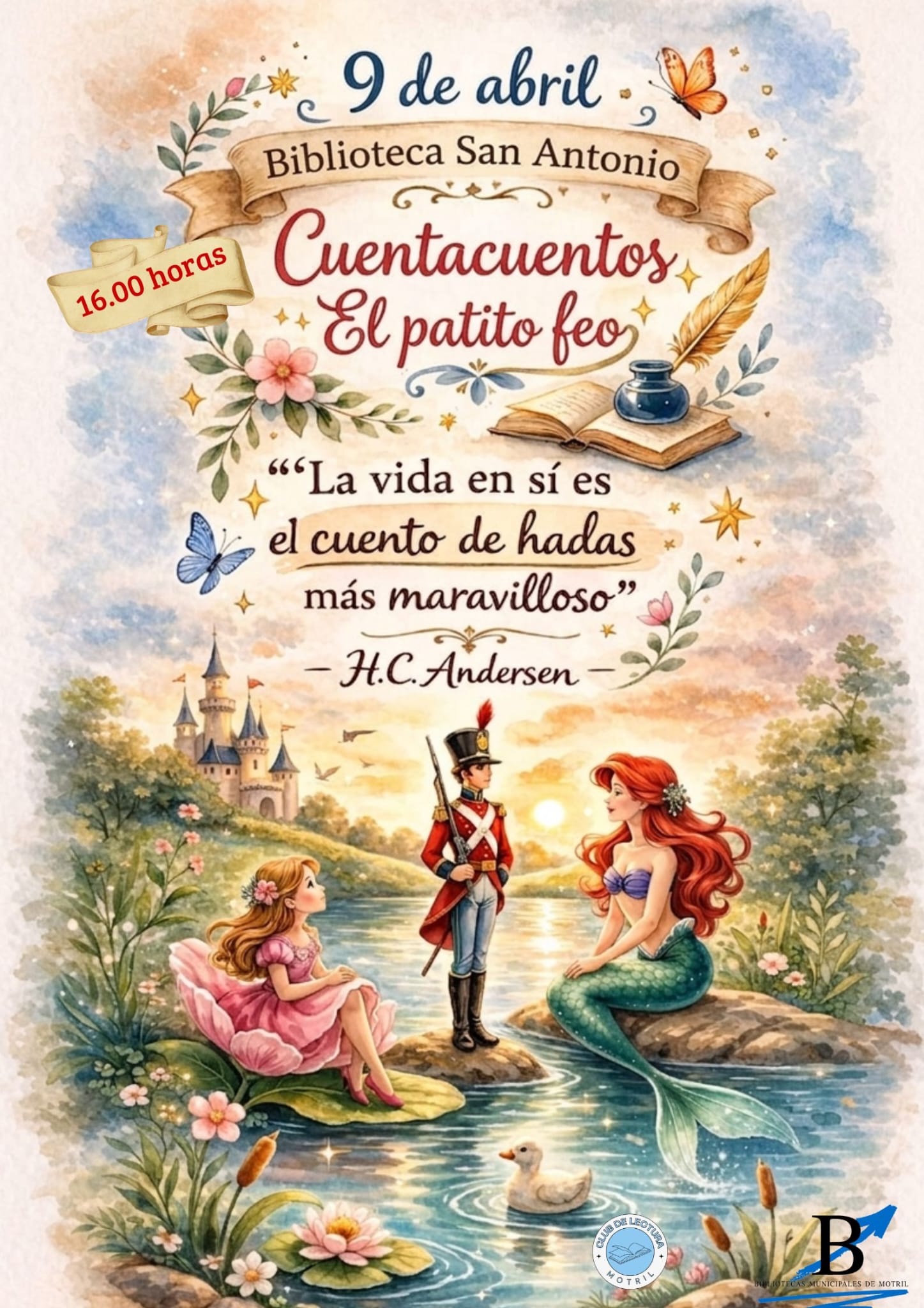 Este cuentacuentos narrará la conocida historia de El patito feo, escrita por el danés Hans Christian Andersen, en una actividad que se dividirá en dos partes: por un lado, la narración oral, con la lectura teatralizada del relato donde los jóvenes podrán redescubrir los valores de la tolerancia y la autoestima y, posteriormente a su lectura, se realizará un taller creativo relacionado con la temática del libro, donde los pequeños podrán trabajar de forma práctica lo aprendido.
