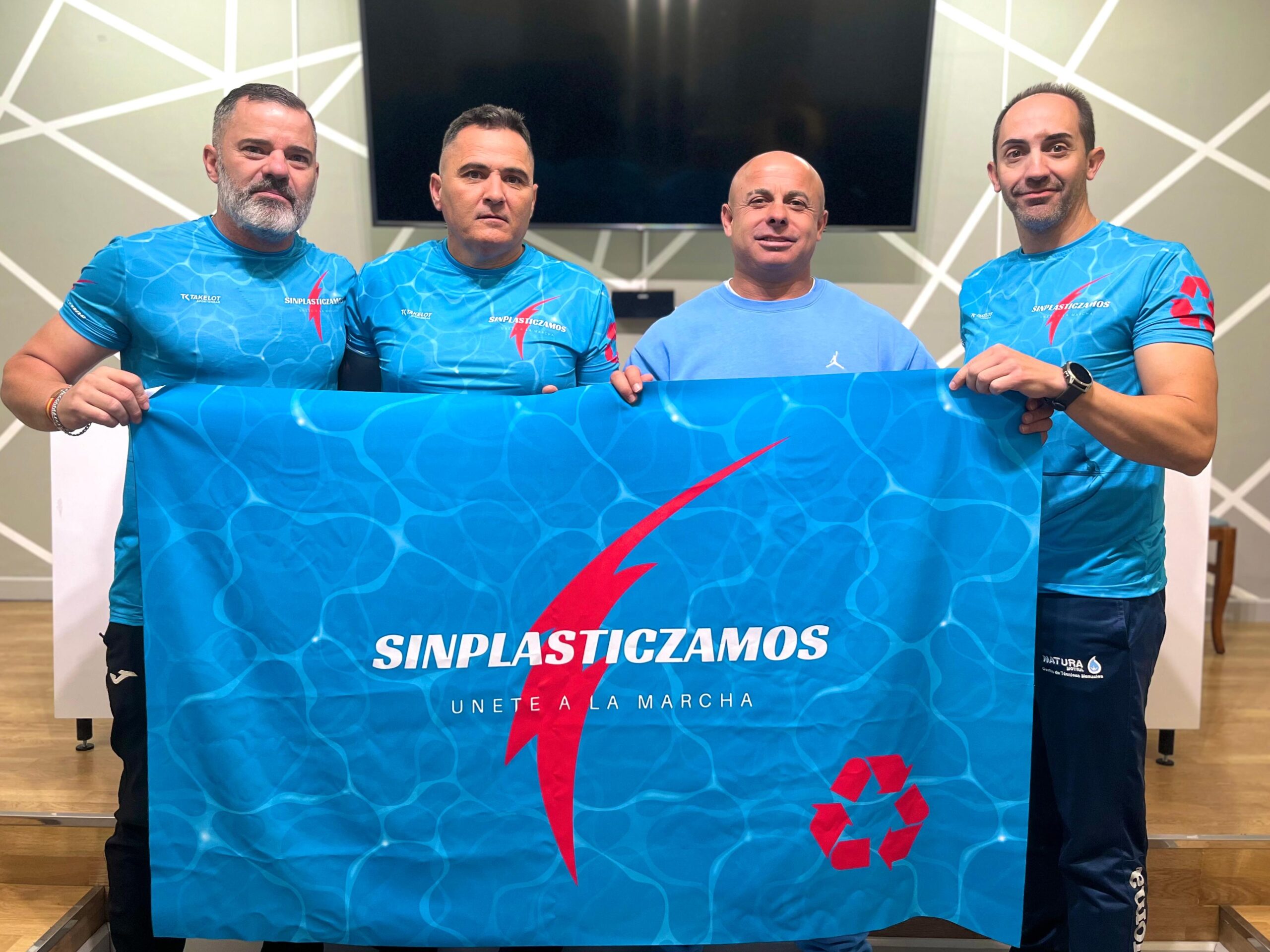El teniente de alcalde de Deportes del Ayuntamiento de Motril, Daniel Ortega Moreno, junto a los deportistas Andrés Jódar, Juan Carlos Bea y Raúl Rubiño, ha presentado hoy la VII edición de SinPlasticZamos, una iniciativa que combina el deporte de ultrafondo con la defensa del medio ambiente.